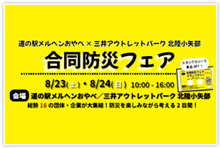 8月23日、24日に道の駅メルヘンおやべと合同防災フェアを開催いたしました。総勢15以上の団体・企業が出展し、楽しみながら防災の大切さを学べるイベントとなりました。